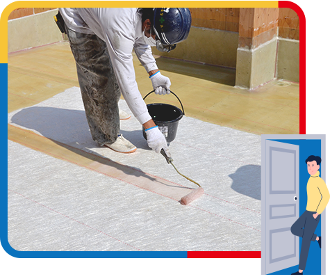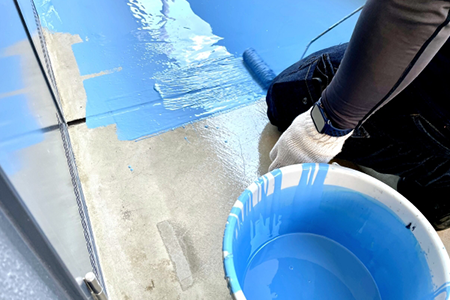 防水性の高い塗料を使い、厚い層になるように塗装していきます。