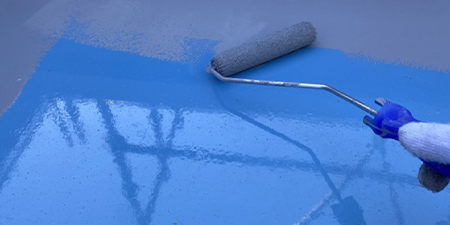 防水層は紫外線に弱いため、塗装後は上からトップコートで保護します。